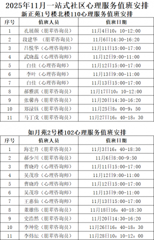 2025年11月“一站式”学生社区心理咨询服务值班安排表